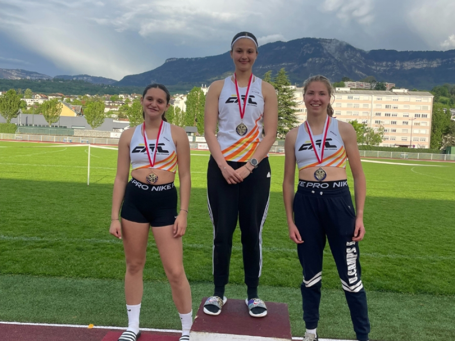 À commencer par nos benjamines avec Louise Enjalbert qui s'octroie la médaille de BRONZE avec un triathlon à 84 points (1m37 à la hauteur, 34 pts)!