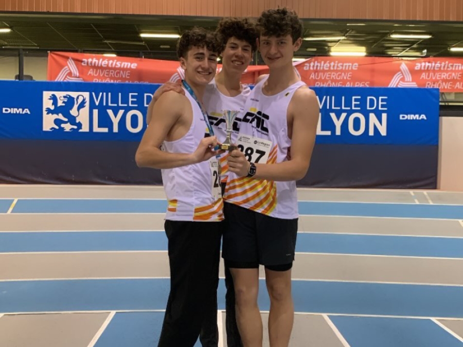 Avec 15 athlètes, 7 filles et 8 garçons, qualifiés aux finales de la très compétitive ligue AURA, l’EAC était un des clubs les plus représenté. Cette performance collective a été récompensée par la magnifique victoire des garçons composée de 3 athlètes à plus de 100 points ! Leny Feutry totalise 119 points et monte sur la 3 marche du podium individuel avec 2 nouveaux records personnels 6’’33 au 50m et 7’’19 au 50m haies, Jonas Bestory est à 107 points avec 3m90 au saut à la perche et Tim Lartigault, malgré un lancer de poids à 1m de son record (14m38 quand-même!) atteint lui aussi la barre des 100 points .