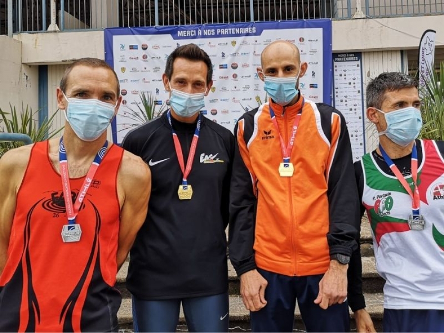Benoit Thommerel revient également avec deux médailles glanées dans sa nouvelle catégorie des M45. Au 400 m haies, Benoit est Champion de France en 60’’83. Au 100 m haies, il est vice- Champion de France en 16’’50, derrière son adversaire de toujours, Francky Vandecasteele, 3ème au dernier Championnats du monde. Benoit est un peu déçu des temps, mais compte-tenu des circonstances très impactées par la crise virale et l’état de la piste détrempée, il est loin d’avoir démérité.