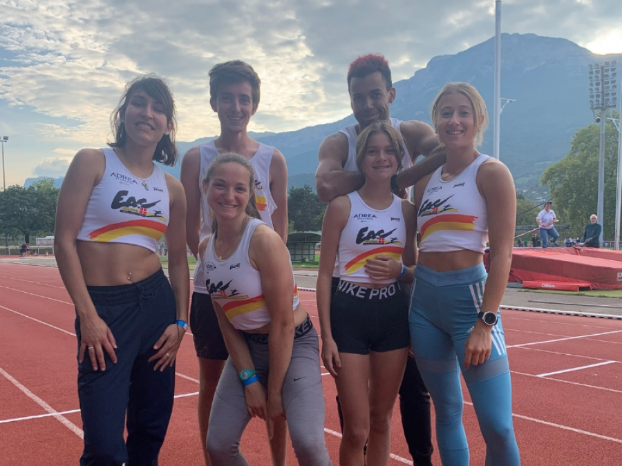 L’EAC était aussi très bien représentée dimanche à Grenoble pour le tour qualificatif de la coupe de France des spécialités. Quatre podiums sont venus récompenser cette participation inédite dans l’histoire du club avec notamment la victoire de l’équipe de lancer de poids féminine menée par Manel Yahia 13m10 au poids de 3 kg comme Noélie Sega 10m15 et Evie Barnes 9m20 et complétée par Estelle Veillas 9m65 au poids de 4 kgs. Autre podium pour les lanceuses avec la 2° place de l’équipe de marteau où l’on retrouve bien sûr notre finaliste mondiale Estelle Veillas 55m78, Emma Goffart 28m56, Faustine Belle 25m89 et la minime Anais Begel 32m29. Le 3° podium revient à l’équipe des triple sauteuses sérieusement renforcée par la hurdleuse Manon Capelle 10m86 suivie de Marine Granger 10m60, Caroline Kurek 10m27 et la minime Leanne Bocquet 9m40.