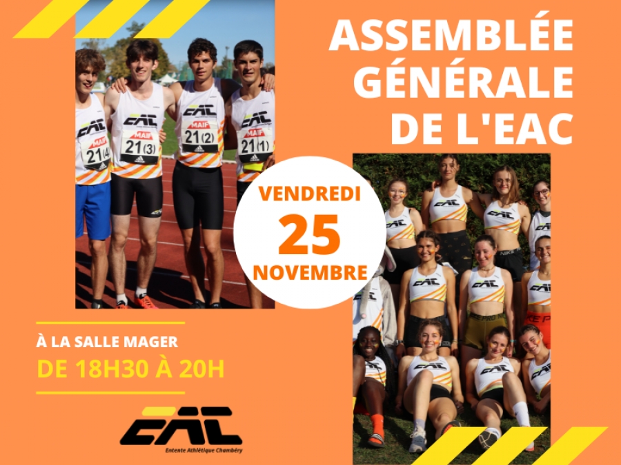 Cette année l'Assemblée Générale de l'EAC se déroulera le vendredi 25 novembre 2022 à 18h30 à 20h30.
