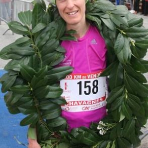 Samedi 27 avril, Sarlat 12h03, j’ (Christine D.B) abandonne au 50ème km du chpt de France de 100km . La déception est énorme. Mais mon corps a dit stop. Mon dos s’est bloqué vers le 42èmekm et les 8km pour rallier Sarlat ont été terribles. Dans ma tête tout va très vite, le dernier mois de préparation a été gêné par une blessure et le stress qui m’a occasionné des nœuds au ventre. Prendre le départ ainsi diminuée n’était pas raisonnable mais qui a dit que j’étais raisonnable ??? 10 minutes à peine après mon abandon, mon mari me chuchote que dans 15 jours c’est Chavagnes ! Sur le coup, impensable, après un 50km…. Mais dès le lundi, j’ai remis mes baskets sans douleur musculaire aux jambes. Je décide de ne rien décider avant la dernière minute. Me détendre, déstresser, soigner mon dos et dénouer mon ventre… faire quelques séances d’entraînements pour me rassurer. j’ai toujours eu du mal à gérer mon stress et jusqu’à 72h de Chavagnes, j’étais remplie de doute. Mon kiné m’a donné sa bénédiction le mercredi. Le jeudi je réservais l’hôtel, le vendredi je m’inscrivais sur place et me voilà en ce samedi matin 11 mai à 5h sur la ligne de départ. Seuls mes parents, ma fille et mon kiné savent.