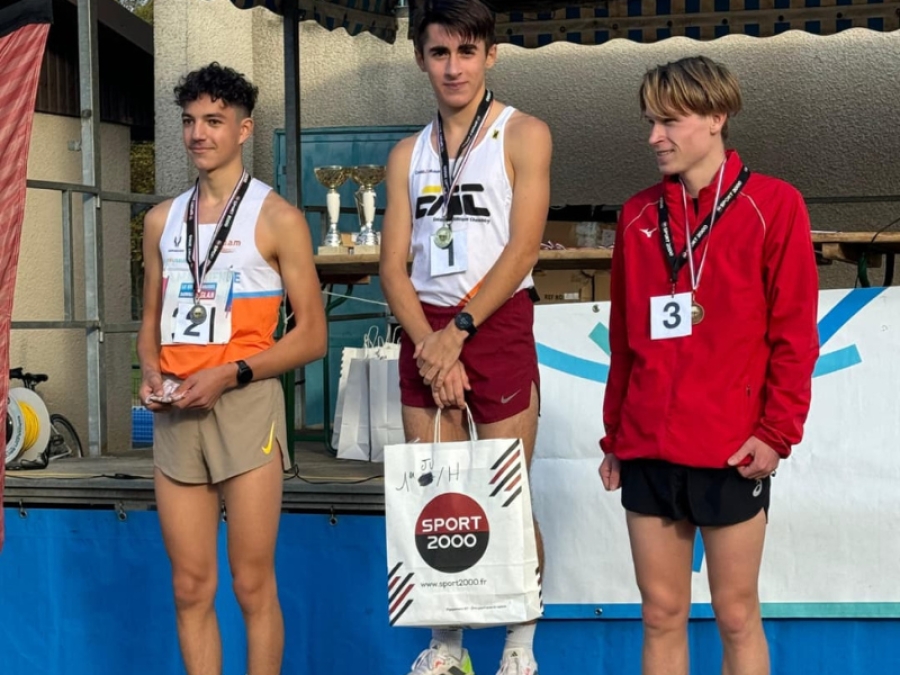 Partit en tête au début de la course junior, Thomas Bonnot, pour sa première année à su montrer sa supériorité en gardant sa place de leader durant ces 5240m de course et en gagnant avec 35 secondes d’avance sur le deuxième. A la 3ème place de ce podium junior on retrouve Gaspard Piret qui, après une remontée spectaculaire vient décrocher cette place sur le podium au coude à coude avec le deuxième. Ces performances couplées à celles des autres juniors Tristan Rubagotti 11ème, Hugo Fischer 21ème et Enzo Brusa 25ème permettent aux juniors masculins de décrocher le titre par équipe. Oscar Guillaumot dernier coureur junior du club à malheureusement été contraint à l’abandon à 500m de l’arrivé après avoir passé toute la course aux avants-postes.