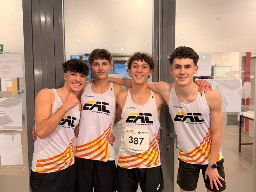 Encore un exploit inédit pour l’EAC avec la victoire sur le 60m cadet de Gaspard Vidal en 7’́’14 devant Amaury Collombier 7’́’21. Ces mêmes athlètes, associés à Loris Alborghetti et Quentin Vincent se classent 4iem du relais 4x200m et se qualifient eux aussi pour les championnats de France.